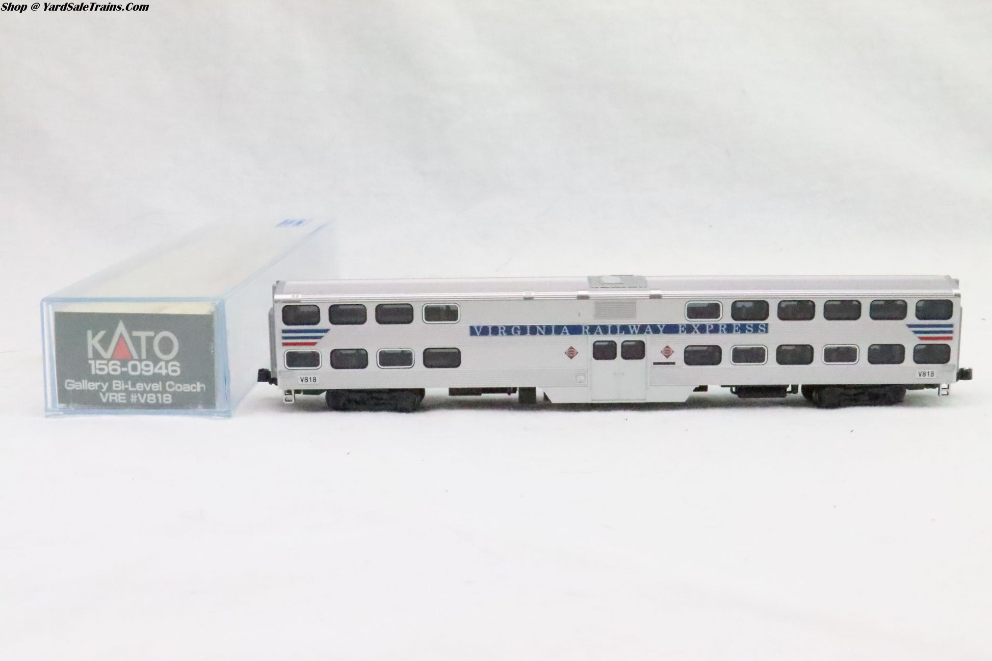 KAT-156-0946 - Gallery Bi-Level Coach - Virginnia Railway Express - VRE #V818 - N-Scale - Preowned